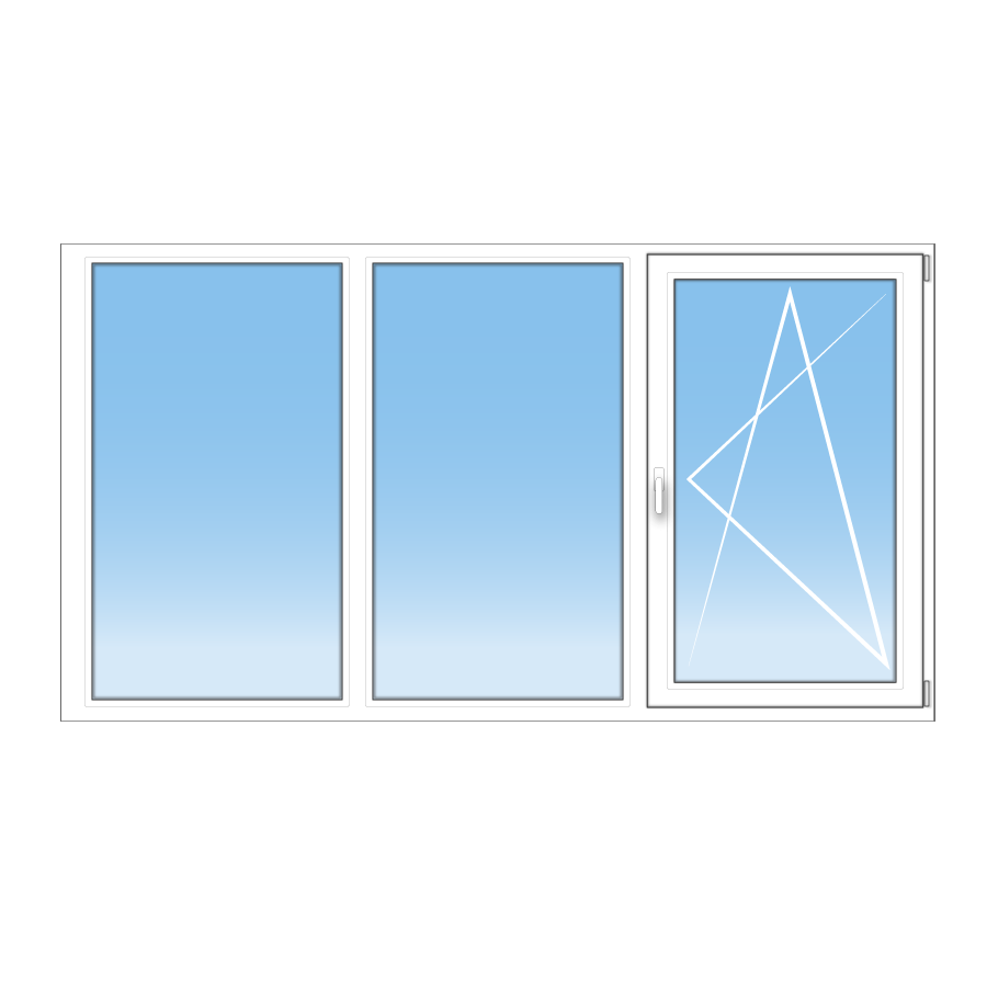 Fenêtre PVC sur mesure 3 vantaux - 2 fixes + 1 oscillo-battant tirant droit