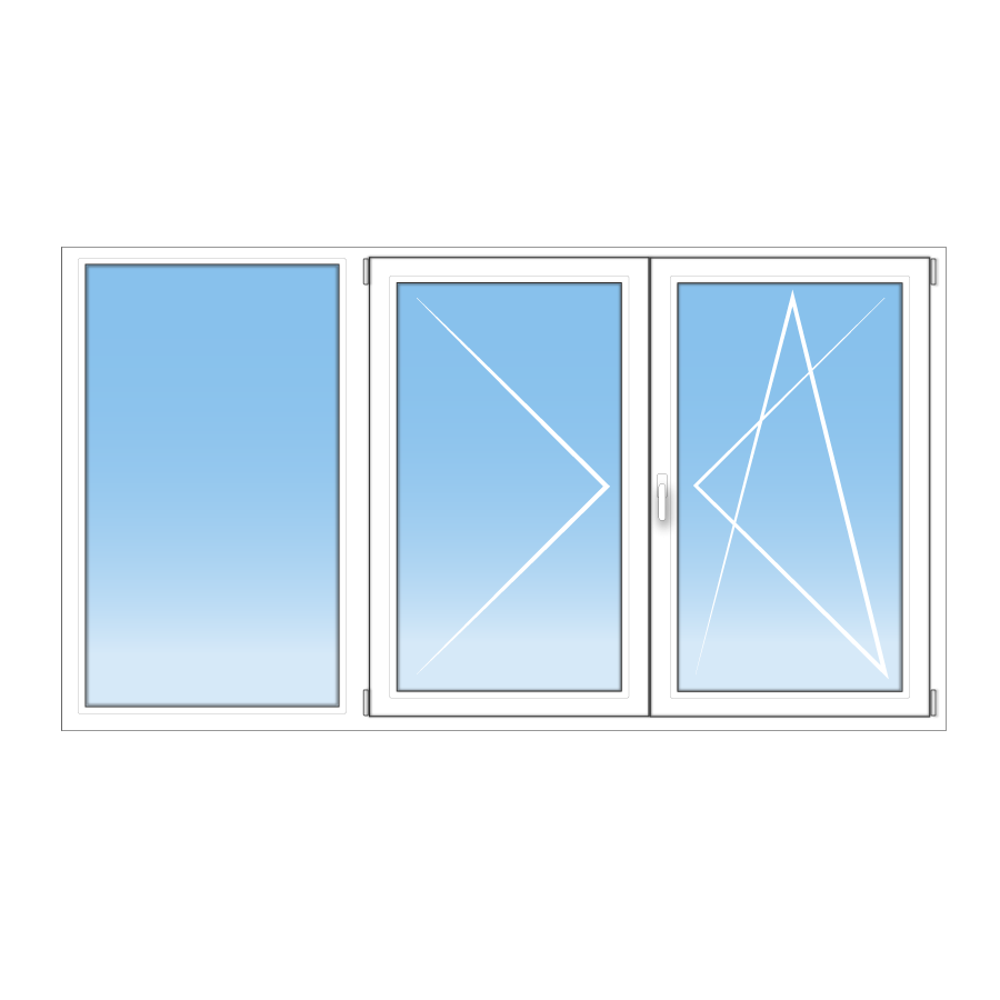 Fenêtre PVC sur mesure 3 vantaux - 1 fixe + 2 oscillo-battants